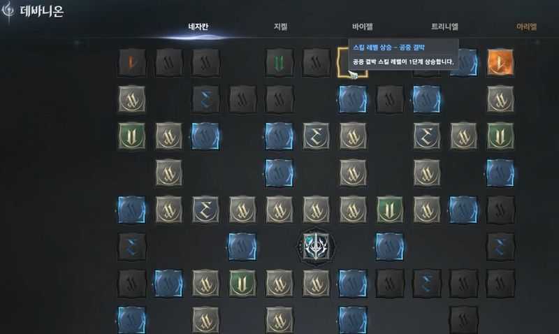 - 스킬 레벨은 스킬포인트로는 10레벨까지 찍을 수 있으며, 이후 데바니온 시스템을 통해 12레벨까지 업그레이드할 수 있습니다.