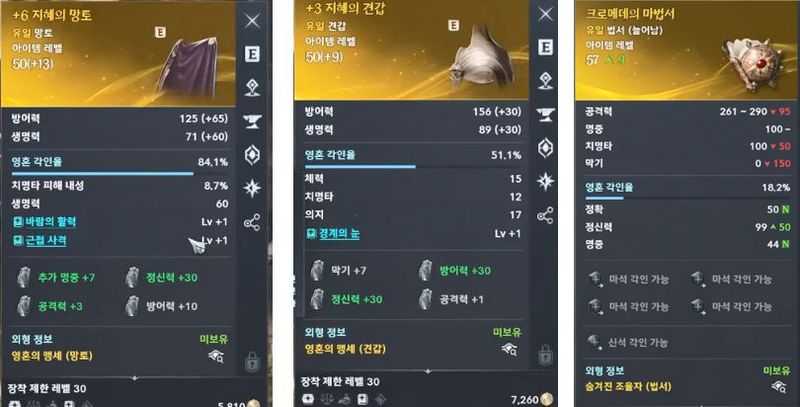 특히 지혜의 돌이나 계시의 아뮬렛 강화 주문서는 전투에서 큰 도움이 됩니다.