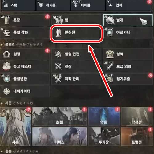 - 설정 메뉴 중간쯤에 있는 만신전에 들어가면 조각상 배치를 할 수 있는 만신전 조종간을 확인할 수 있습니다. 이곳에서 자신의 빌드에 맞는 조각상을 배치해 보세요.