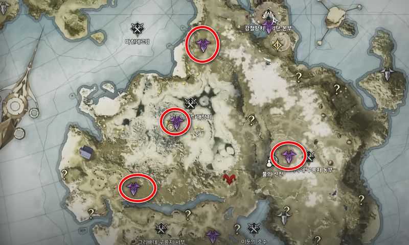 지도를 확인하고 물음표 아이콘이 있는 곳을 찾아가 보세요. 노드를 수집하여 캐릭터를 빠르게 강화시킬 수 있습니다.