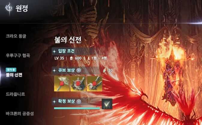 불의 신전은 늘무를 얻을 수 있는 중요한 던전입니다. 반복적으로 파밍하면서 중간 보스를 처치하고 각인 포인트를 모아 최종 보스를 처치하는 방식으로 진행됩니다.