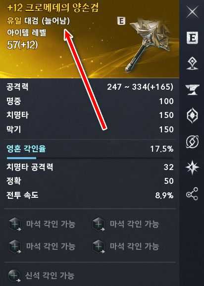 또한, 다른 직업의 무기가 나오는 경우도 있으므로, 이를 상점에 판매하지 말고 창고에 보관하는 것이 좋습니다. 나중에 영혼 각인 시스템의 재료로 사용될 수 있기 때문입니다.