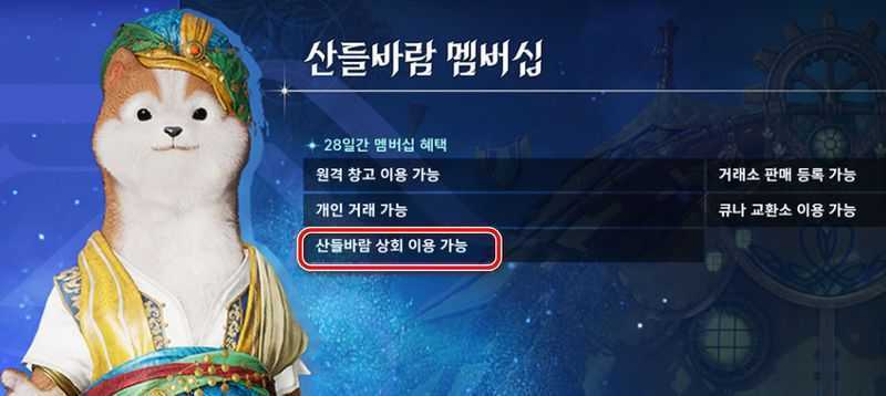 또한, 유료 구독 서비스슈고 특급 멤버쉽, 산들바람 멤버쉽, 챈가룽 멤버쉽에 가입하면, 산들바람 상회를 이용할 수 있습니다.