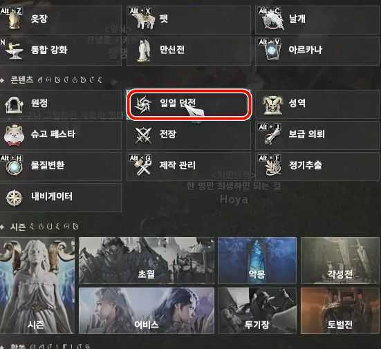 메뉴 중간 쯤에 있는 ‘일일 던전’을 클리어하여 진행할 수 있습니다.