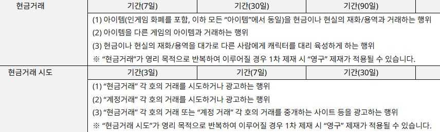 아이온2 이용약관을 보면 현금거래는 정지 등과 같은 제재 조치가 가능하기 때문에 주의할 필요가 있습니다.