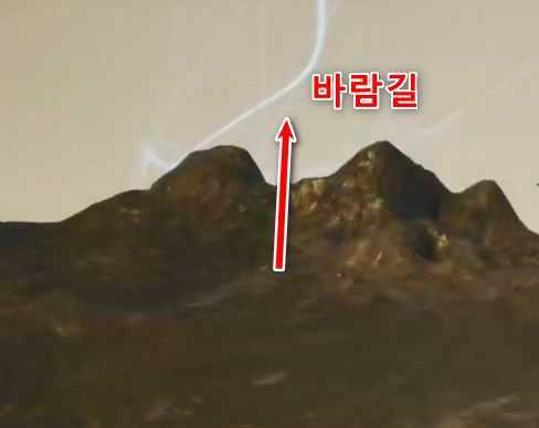 해당 위치에서 하늘을 올려다보면 바람길이 보입니다.