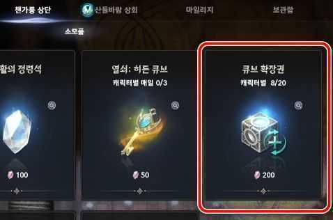 특히 큐브 슬롯을 20만 키나 이상으로 확장하게 되면, 큐브 확장권을 사용하는 것이 더 유리할 수 있습니다. 그렇다면, 큐브 확장권을 얻는 방법은 무엇일까요?
