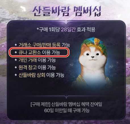이 방법을 이용하려면 먼저 산들바람 멤버십에 가입해야 합니다. 큐나 교환소를 이용하려면 반드시 멤버십 구독이 필요합니다.