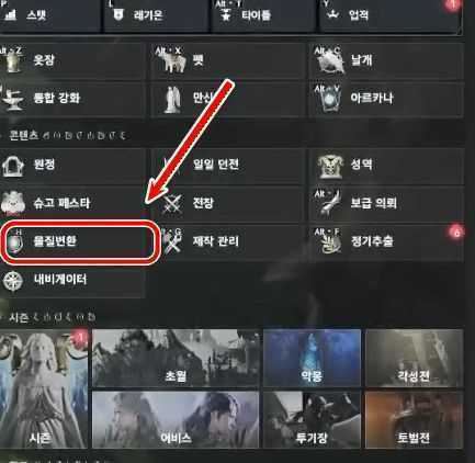 게임 메뉴에서 물질 변환을 선택합니다.