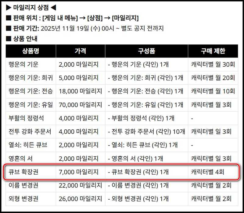 이 방법은 마일리지를 모은 후, 추가적인 큐브 확장권을 확보할 수 있는 좋은 방법입니다.