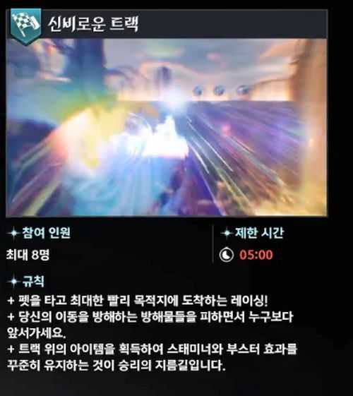 이벤트가 시작되면 펫을 타고 트랙 경주가 시작됩니다. 트랙에서는 속도와 스태미너를 관리하는 것이 핵심입니다.