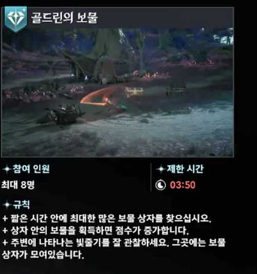 남은 시간 약 1분 50초부터는잠시 보물 아이템 생성이 멈췄다가, 그 후에는 더 많은 보물상자와 큐브 형태의 골드린의 보물상자가 등장합니다. 이 큐브를 열면 더 많은 보상을 얻을 수 있습니다.