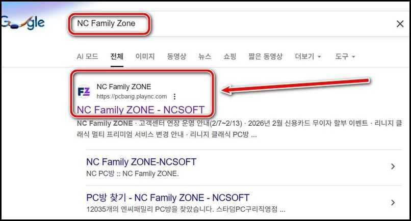 검색 결과에서 NC Family ZONE 공식 사이트로 들어가 주세요.