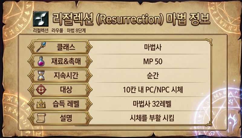 마법사 8단계 마법 – 리절렉션(Resurrection)
