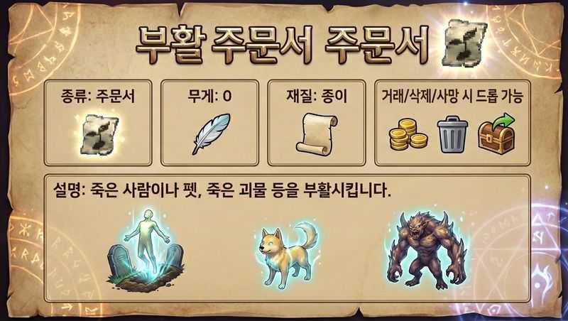 부활 주문서는 사망한 플레이어, 펫, 몬스터 등을 부활시키는 주문서입니다.