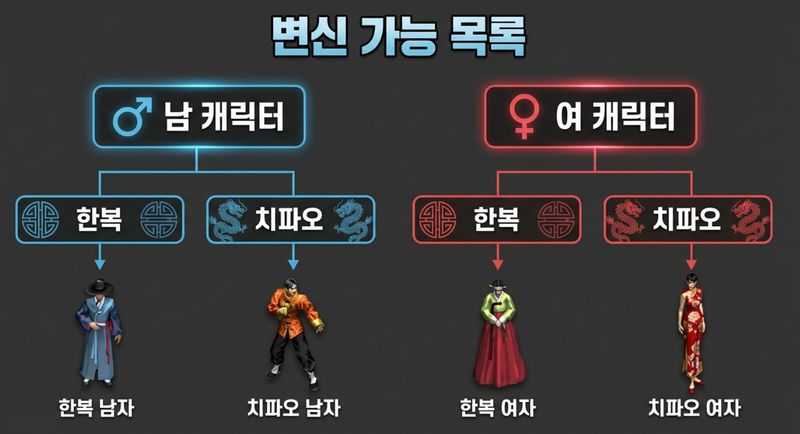 • 남 캐릭터: 한복 남자, 치파오 남자