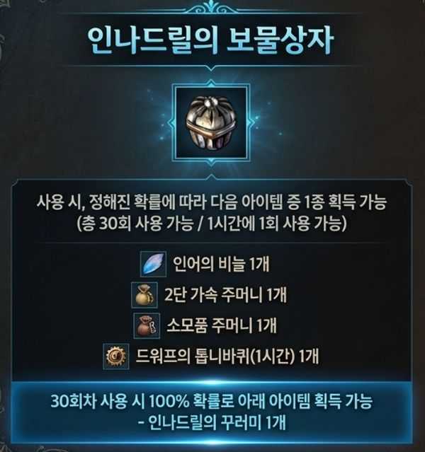 • 하이네의 선물 상자 → 인나드릴의 보물상자(30회)