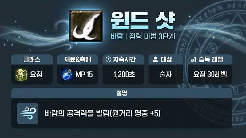 요정 30레벨 마법 ‘윈드 샷’과 장궁