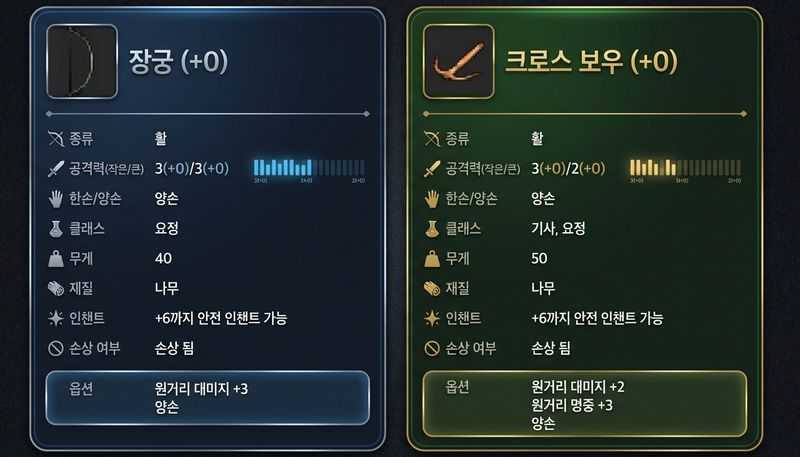 요정에게 장궁 vs 크로스보우