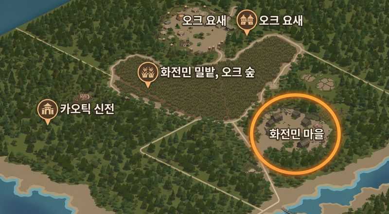 카오틱 신전으로 간 뒤, 귀환 주문서를 사용하면, 화전민 마을로 갈 수 있습니다.